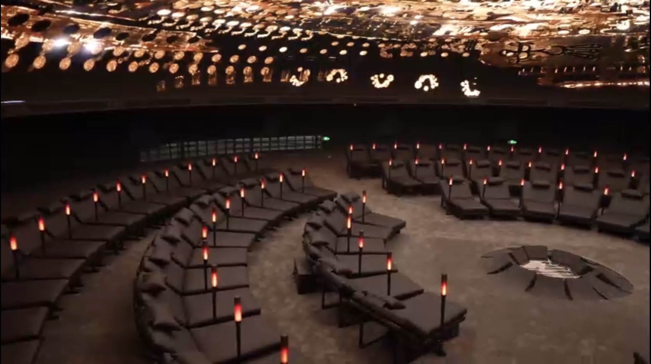 为提升体验质感,剧场融合多项前沿数字技术。在视听方面,拥有全国博物馆领域规模最大的交互式全景声LED穹顶,采用7468块LED模组搭建起直径为20米的穹顶,可实现近16K分辨率与近400平米的连续视觉场域,确保画面细节纤毫毕现;配备25路独立音响通道,构建完整的三维声场,实现声音与画面的精准同步,让神鸟掠过、风沙吹过、金器錾刻、玉石开凿、铜液滴落等音效极具临场感。108支数字火把在交互体验层面有了新突破,观众肢体动作可直接驱动场景动态变化,使其从被动“参观者”转变为主动“参与者”。